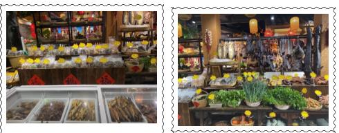 干貨、肉禽、糧油米面……衡州菜市鄉(xiāng)土食材貨架上各種土特產(chǎn)品琳瑯滿目。既有衡陽縣長樂荷折皮、西渡湖之酒、衡南縣茅市燒餅、湘西土臘肉、衡山黃貢椒、邵陽豬血丸子、岳陽樟樹港辣椒等具有地理標(biāo)志,獨具地方風(fēng)味的土特產(chǎn),也有農(nóng)戶種植的農(nóng)產(chǎn)品,及山里人家采來的野山菌、煙筍片等原生態(tài)山貨。